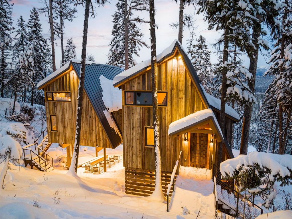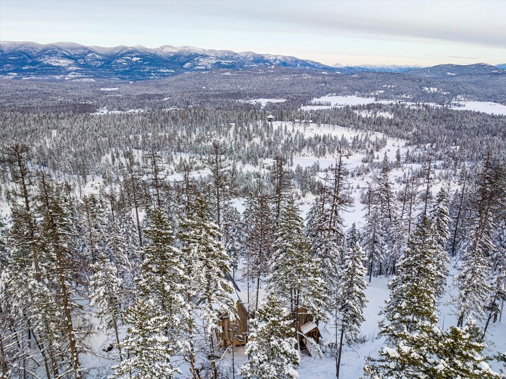 Premium 20 acre build lot in the Homestead with infrastructure and guest house complete! Nestled in the trees and surrounded by national forest lands, this twenty-acre paradise that's prepped for a main house build is just thirteen miles from Whitefish, Montana. As part of the private, gated Homestead Community, access to excellent amenities includes a personal concierge, a mercantile, a lakeside clubhouse, private Whitefish Lake access, a 7-hole golf course, and more. On The Rocks Treehouse, a fully-furnished and professionally decorated mountain retreat, was built in 2023 by the renowned Treehouse Masters. The cozy interior features natural hemlock paneling and trim, open beam ceilings, and stunning wood flooring. The kitchen features a full-sized fridge, an electric oven, a propane cooktop, and a dishwasher. Enjoy coffee at the bar top or curl up in the living room to admire the view. Roast s'mores at the natural rock campfire downstairs or have a cocktail on the spacious deck overlooking the forest. There's room to expand and create a perfect private reserve with two additional home building sites. This gorgeous luxury treehouse is truly a one-of-a-kind property. Infrastructure that has been installed, well, septic, waterlines, generator, power all to future building locations.