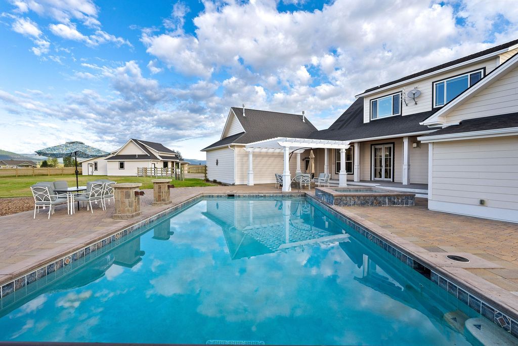 Bring your horses! Experience the epitome of equestrian luxury in the heart of northwest Montana. This remarkable 10-acre estate features a beautifully crafted farmhouse that blends elegance and exceptional craftsmanship, offering 4 spacious bedrooms, 4 luxurious bathrooms, and a gourmet kitchen designed for culinary artistry. The property is perfect for entertaining, and boasts a heated pool, oversized hot tub, and abundant outdoor spaces. The guest house complements the estate, and the world-class equestrian facilities and custom fencing put it in a league of it's own. Ideally located just minutes from the renowned Rebecca Farm Equestrian Center, Logan Health Hospital, and Glacier International Airport, this exceptional property offers both luxury and convenience. All information deemed reliable but not guaranteed and should be independently verified by buyers and their agents.