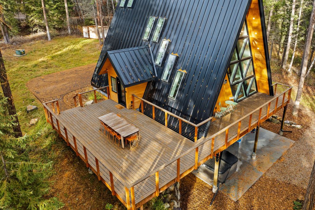 Discover a truly unique Montana retreat minutes from downtown Whitefish. Set on 4.56 private acres, this architecturally striking A-frame blends modern design with classic mountain charm. Featuring 5 bedrooms & 2 bathrooms, the home offers generous space for comfortable living & hosting. Step inside to soaring lines, stylish finishes & thoughtful details throughout. After a day on the slopes, warm up with built-in ski boot warmers, soak in the outdoor hot tub, or unwind in the soaking tub. The expansive wrap-around deck, fire pit, & tranquil wooded setting create an ideal space for entertaining or enjoying quiet Montana evenings. With a metal, low-maintenance roof, upgraded design touches & room to spread out, this home balances convenience with adventure. Only 8 minutes to downtown Whitefish and 18 minutes to Whitefish Mountain Resort, this property places you in the heart of everything that makes the area extraordinary. A rare chance to own a standout, design-forward home on acreage.