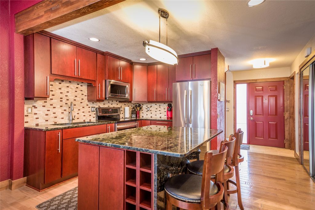 This riverfront condominium offers 1,545 sq. ft. of living space with 2 bedrooms, 2 bathrooms, and a versatile bonus room/office. This end-unit features vaulted ceilings, cherry cabinetry, granite countertops, and hardwood and tile flooring, along with two private decks overlooking the Whitefish River. Thoughtful updates and a turn-key finish provide comfort and ease. Located in the heart of downtown Whitefish, enjoy the rare combination of peaceful waterfront living with walkable access to shops, restaurants, coffee houses, and entertainment. A dock located directly behind the unit creates opportunity for an easy paddle to Whitefish Lake. Ideal as a full-time residence, vacation retreat, or investment opportunity.