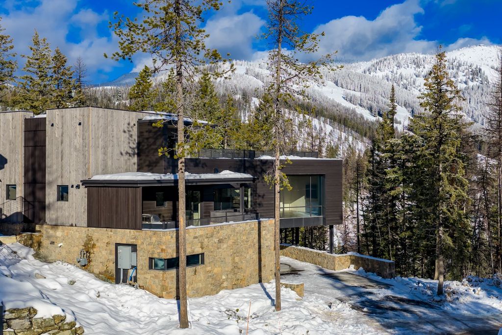 SKI-IN/SKI-OUT Elk Camp Chalet! Experience premier ski-in/ski-out living in this brand-new Elk Camp Chalet, custom constructed by Bear Mountain Builders at Whitefish Mountain Resort. This striking mountain-modern residence features over 4,700 square feet of sleek living space, featuring three bedrooms and five bathrooms designed for both maximum comfort and effortless entertaining, along with high-end appliances and luxe finishes. The open-concept layout is elevated by European White Oak flooring and oversized windows with in-your-face, bold slope views that fill the home with warm, natural light and frame the surrounding alpine landscape. Perched above the Home Again ski trail and backed by open space, the property provides true ski-in/ski-out convenience and an easy return home. The lower level is tailored for mountain living, complete with a bunk room, dedicated ski lockers, and a generous outdoor patio with a Diamond Spa hot tub, optimal for Apres-ski. The upper level is reserved for the private primary suite, showcasing a spa-inspired steam shower and private separation from guest quarters. A rooftop deck with a fire pit was created for outdoor relaxation, offering a front-row seat to sweeping mountain views in every season. Only minutes from the base lodge and Downtown Whitefish, and approved for nightly and weekly rentals, this custom-built chalet is an outstanding opportunity, perfect as a luxury investment property or an unforgettable mountain sanctuary.