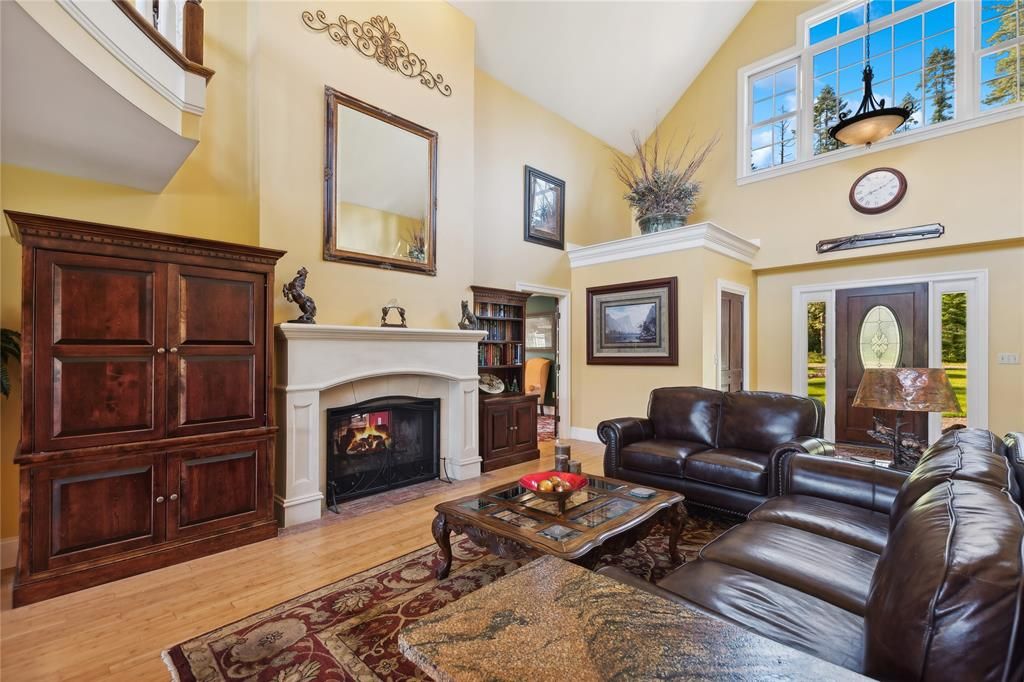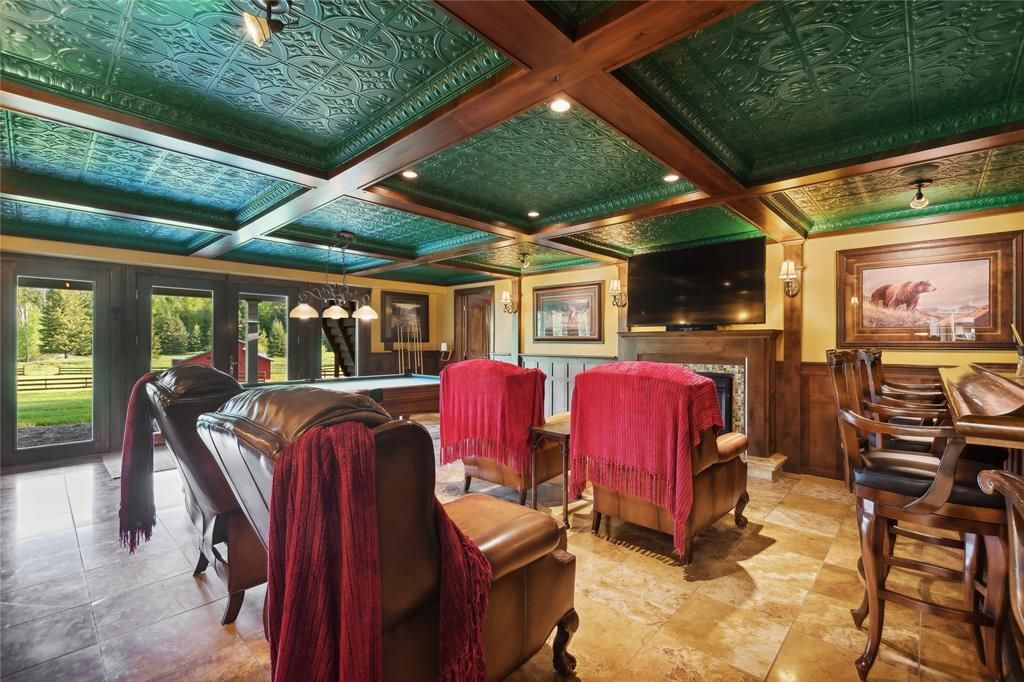 Offered is a partially updated Whitefish home built in 2000, set on just over 10 private acres at the end of the road with sweeping 180-degree views of the Whitefish Mountain Range. The property is cross-fenced for horses and includes multiple outbuildings, a 20' x 20' shop, red barn, and chicken coop. Inside, the home opens to a dramatic entry and great room with soaring 20' vaulted ceilings and bamboo flooring that fills the space with natural light. The chef's kitchen features stainless steel appliances, generous counter space, and a functional layout. The primary suite is located on the main level and direct access to the deck. With three levels of living space, the lower walkout level offers flexible use with an additional bedroom, home office, wet bar, home theater area, pool table, and custom surround sound. A wraparound deck captures expansive mountain views and abundant wildlife, creating a peaceful setting that feels worlds away while still being close to Whitefish.