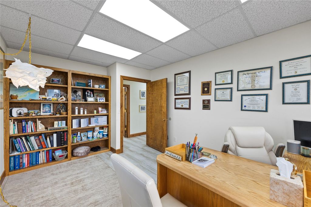 This newly renovated commercial condo offers a modern and professional space ideal for medical or office use. The unit features brand new heating and cooling systems, including a 2024 HVAC upgrade, ensuring year round comfort. Fresh paint, new trim, overhead lighting, countertops, doors, and customer glass doors enhance the aesthetic appeal. Inside, you'll find five offices, four clinic rooms, a kitchenette, two bathrooms, and a server/laundry room. Some original wood detailing throughout adds character to the space. Furniture, fixtures, and equipment may be available for purchase. The Owner is open to selling fully furnished, excluding personal items. Conveniently located next to Logan Health Hospital, the building offers ample parking and street parking. Utilities are managed by the Burns Building owners, with Unit 2 responsible for 23% of utility costs. Zoned H-1/PUD, this space is perfectly suited for healthcare or professional services.
