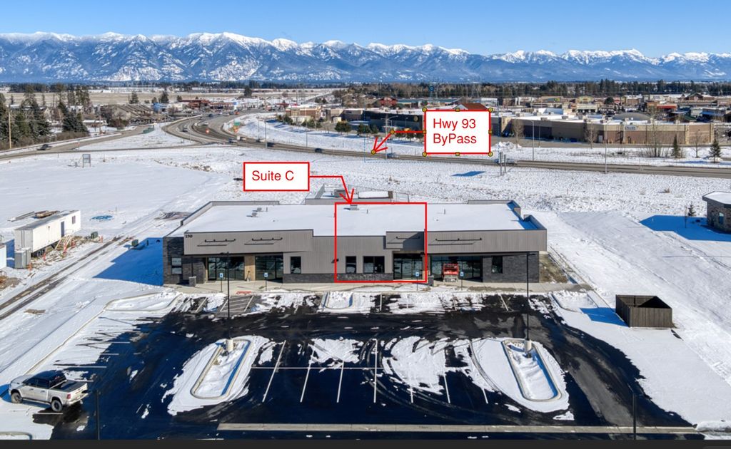 SUITE C - BUILD OUT TO SUIT opportunity to own your own condo Suite! This 2296 sf shell Suite C condominium is ready for your design and to be built out. Incredible location in the heart of Kalispell's largest area of growth and development. Partner with Swank Enterprises to coordinate your tailored design and construct your interior build! The Suite is part of a Condo Association that has recently been established. The other three Suites are completed, or nearly complete. Separate water, electric and gas meters make this unit ideal for your business. High speed internet is available. 12' high walls, and a concrete slab that has yet to be cast allows for complete design flexibility. Large windows allow great lighting, with a large, lit private parking lot. This brand new building boasts a high exposure location backing up to the Hwy 93 bypass for excellent signage/advertising opportunities. Don't miss this amazing condo Suite in the perfect location! The list price includes the shell cost ONLY (as is) for Suite C only. It DOES NOT INCLUDE owner improvements/build out costs. List price includes build costs for the development of the property, building exterior facade, parking lot, trash enclosure, landscaping, etc. Swank Enterprises is the REQUIRED BUILDER for the interior improvement as a required term of the sale. Swank will assist in selecting an architect, getting plans submitted for the City building permit, and pricing out the cost of the build out. An Amendment to the sale contract will be done to the contract once all final costs have been established. Swank Enterprises will consider owner financing for the build out portion only with build deposit to be determined once final costs and timelines are established. Long term financing will need to be provided after the sale with owners selected bank. This property is located on MT State DNRC Lease land and is subject to a sublease with master lessee. Inquire for estimated build out costs and details of Condo Association, sub lease details, utilities, condo dues, etc.