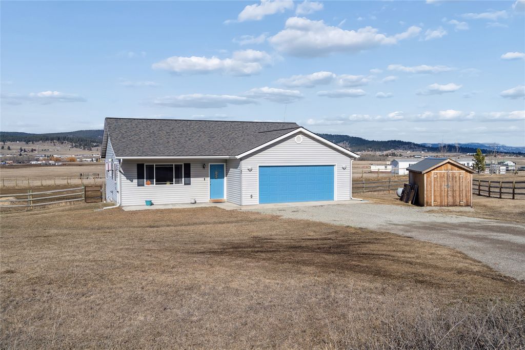 End-of-the-road privacy meets country freedom at 45 Sundance Court in Kalispell. Set on just over an acre with no zoning and minor CCRs, this well-maintained 3-bedroom, 2-bath home offers 1,144 square feet of comfortable single-level living with room to breathe. The property is horse-ready with a fenced backyard and horse stalls already in place, making it ideal for those seeking space, flexibility, and Montana lifestyle living. Inside, the vaulted entry and open floor plan create an airy, inviting feel, enhanced by new flooring and carpet, updated blinds, and a cozy propane fireplace. Abundant windows fill the home with natural light and frame surrounding mountain views. Recent upgrades include a new roof, sump pump, stove, replaced back fence, and the addition of the horse stalls, giving buyers peace of mind and added value. A heated double-car garage provides excellent storage and year-round convenience. Located just minutes from the bypass, you'll enjoy quick access to Kalispell amenities, the bike path, Flathead Lake boating, Whitefish skiing, hiking trails, and endless outdoor recreation. Offered mostly furnished if desired, this property is truly move-in ready and positioned for easy Montana living.