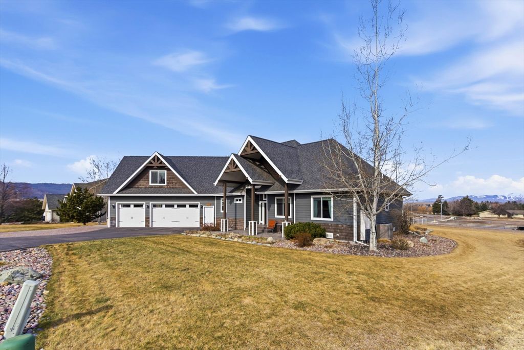 Experience refined Montana living in this stunning 2,871 sq ft custom ranch style home set on 0.8 acres in the peaceful Aspen Knoll subdivision. Thoughtfully designed, the main level features 3 bedrooms, 3 bathrooms, and a dedicated office. Upstairs there is a spacious 600 sq ft bonus room- providing the perfect space for a media room, play room, or an additional living area. The home showcases beautiful craftsmanship throughout, with vaulted ceilings, exposed wood beam accents, expansive windows, and an abundance of natural light. Outdoor living is just as impressive with large covered front and back patios featuring stamped concrete- perfect for relaxing while taking in the mountain views. The property includes a 3-car garage, RV parking, and a shed with covered boat parking, offering plenty of room for all your Montana toys. Additional highlights include in-ground sprinklers, a fenced garden area, a fenced side yard ideal for pets or children, and a hot tub hookup ready for installation. This exceptional property combines thoughtful craftsmanship, beautiful views, and everyday convenience- offering the perfect balance of comfort, privacy, and Montana living at its finest.