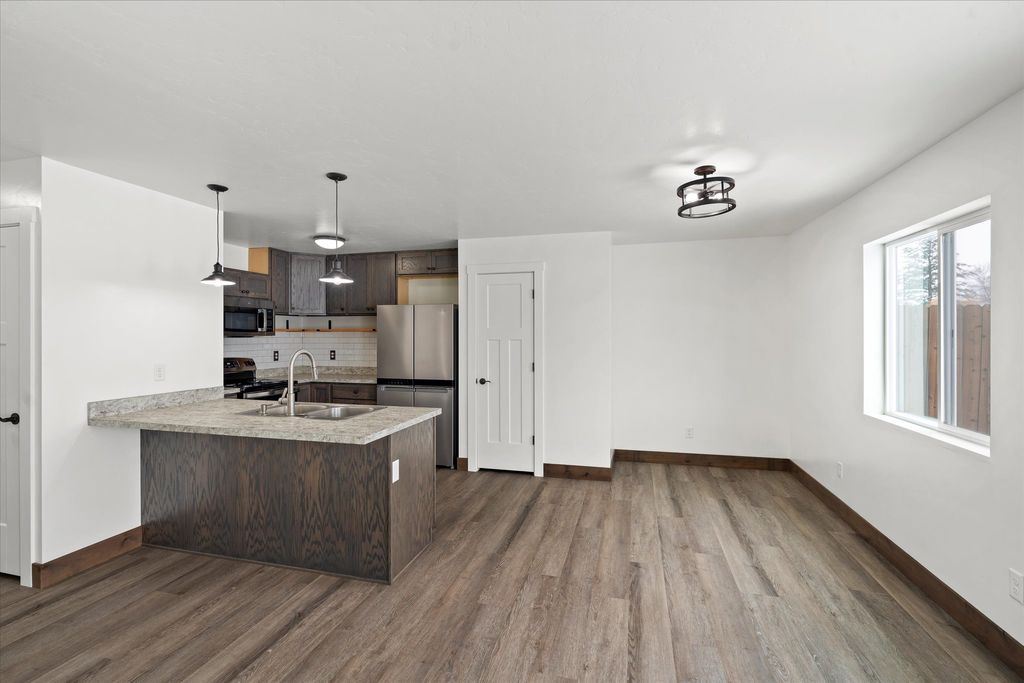 There's something easy and comfortable about this home from the moment you arrive. Built in 2022, this single-level townhome was designed for simple living, where everything feels just right without excess. With two bedrooms and one full bath, the layout flows naturally, and the open living space creates a place to gather, unwind, and enjoy everyday life. Thoughtful finishes, including stainless steel appliances and modern touches, add a clean, updated feel throughout. What truly sets this property apart is the outdoor space. The fully fenced yard with privacy fencing and patio offers a quiet retreat"”whether it's morning coffee, evenings outside, or time spent with friends and family. From here, you can take in views of Whitefish Mountain Resort, adding a sense of place that's hard to replicate. The heated and insulated attached garage brings year-round convenience, and the location within city limits keeps you close to everything while still offering a sense of calm and privacy.