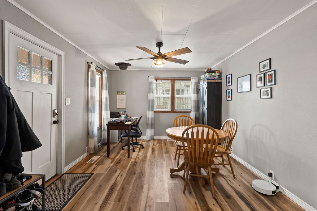 Charming 1.5-story home located on Kalispell's desirable west side within city limits. Recent updates include new vinyl siding, energy-efficient thermal windows, and an inviting front porch. The main level features a bedroom, full bathroom, and laundry area for convenient single-level living. Two additional bedrooms are located upstairs, accessed by a unique wooden spiral staircase that adds character and charm. The spacious backyard offers room to relax, entertain, or add a future deck. A 22x28 detached garage with alley access provides off-street parking and storage potential, though it may require repair or replacement. Ideally situated just minutes from downtown Kalispell, shopping, dining, and amenities.
