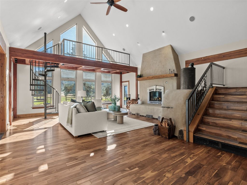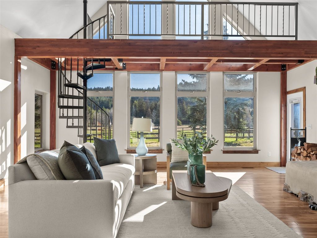 This is what it looks like when a property actually has it all. A 4-bed, 4-bath main home (3,519 sq ft), a separate (806 sq ft) 2-bedroom apartment above a double garage, a ground-level flex/hobby room, a 30x70 shop, horse-ready cross-fenced acreage, and an RV hookup, all on 7.52 private acres just minutes from downtown Whitefish. That's two full residences, a shop, and a bonus room before you even walk through the front door. The main house is built for real life. Vaulted ceilings with exposed beams, an open kitchen with granite counters, custom cabinetry, a wine cooler, and French doors spilling out to a covered porch. Two bedrooms and a full bath sit on the main level alongside a laundry room and office. The primary suite has its own entrance, private deck, walk-in tiled shower, jacuzzi tub, and dual sinks. Upstairs adds a full bath and a large fourth bedroom ensuite! The detached garage structure is its own ecosystem. Above it sits a fully self-contained 2-bedroom apartment with a kitchen, living area, bath, and deck, ready for a tenant, a caretaker, visiting family, or a mortgage offset. Below it, the flex/hobby room handles the overflow as a studio, gym, workshop, or creative space. Outside, the acreage is set up for horses or hobby farming with a large front pasture, livestock gates, and mature trees creating natural privacy. Agricultural land borders two sides of the property, so the open feel isn't going anywhere. The 30x70 shop is fully operational with an insulated section, propane heat, wood stove, concrete floors, and 100-amp power. Underground sprinklers, central vacuum, paved driveway, and a productive well round the home out. Properties with this combination of usable land, dual living quarters, and functional outbuildings rarely come to market near Whitefish. This one checks every box without asking you to compromise on any of them.