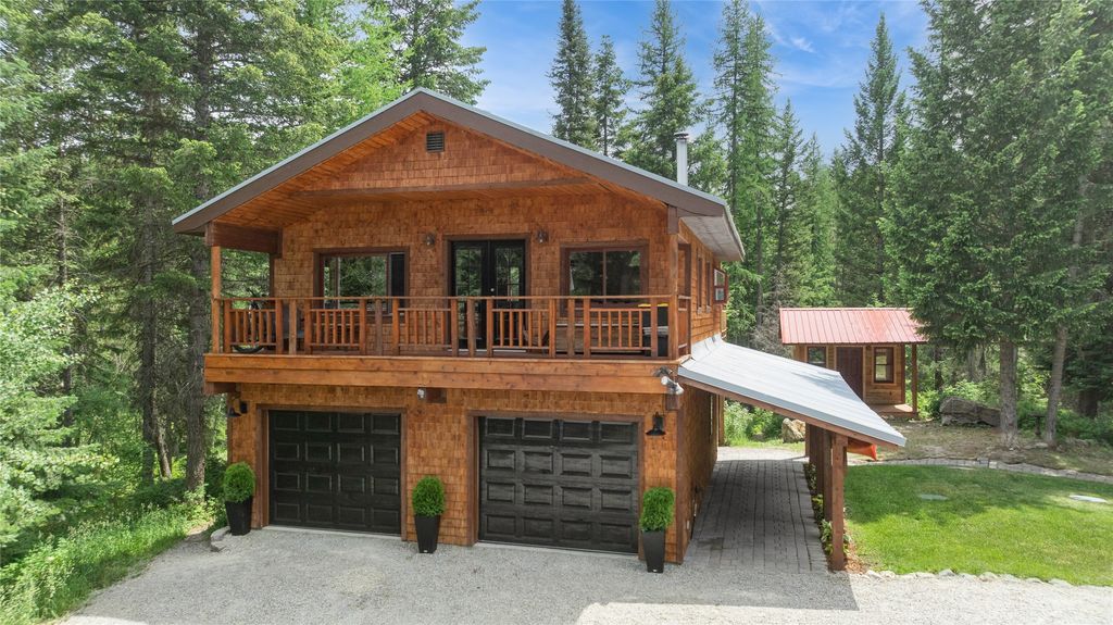 Discover your ultimate Montana sanctuary on 11.03 private acres. This unique property features a main residence built in 2009 and a detached garage with a separate apartment built in 2004, perfect for multi-generational living or hosting guests. The main residence offers 3,314 sq. ft. with 3 bedrooms and 2.5 baths. The home features a fireplace, large picture windows, a sun deck, a large pantry, an office, and multiple decks for enjoying the serene landscape. Above the detached 2-car garage, a charming guest apartment provides a separate 1-bedroom, 1-bath living space. A chicken coop and raised garden complete the lifestyle. This property offers incredible privacy with Flathead National Forest and Bootjack Lake in close proximity for hours of recreation. You are a short drive from downtown Whitefish, with world-class skiing at Whitefish Mountain Resort and only 45 minutes from Glacier National Park. Experience the perfect blend of peaceful seclusion and easy access to year-round adventure.