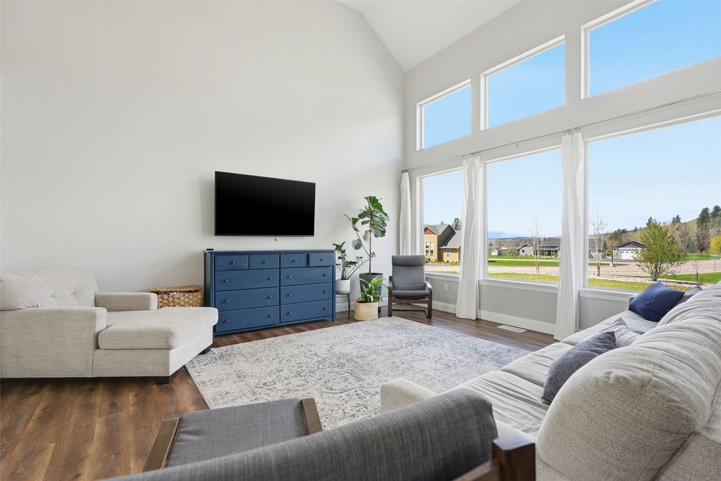 Nestled among the Frenchtown's Mill Creek subdivision off Mill Creek Road, with sweeping 360-degree views, this spacious home has a great layout. Great open floor plan with the living, dining room, and kitchen all flowing seamlessly together. Gorgeous kitchen countertops, high-end cabinets, and tons of pantry storage. Off the Kitchen is a large laundry room with tons of great storage and a deep 3-car garage. Vaulted ceilings and large windows in the living room capture the sweeping Mountain views of Frenchtown. The owner's suite is on the main level and has a spa-inspired bathroom with a soaking tub, a walk-in tiled shower, and dual vanities. Also on the main level, there is an additional bonus room that would make a great office space or additional bedroom. Upstairs, there are 3 bedrooms, a large dual vanity bathroom with a separate shower, and a second hangout/living area. Outdoor enthusiasts will appreciate the proximity to hiking and biking trails in and around Frenchtown. Frenchtown is located 20 minutes outside of Missoula for all of your shopping needs. Discover the perfect balance of luxury, convenience, and natural beauty in this meticulously designed home.