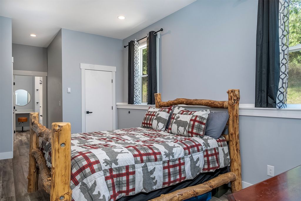 Tucked away on 1.47 acres of wooded privacy, this sleek modern designed 4-bedroom, 2-bath home built in 2021 offers the perfect balance of practicality and peaceful retreat living. With over 2,200 square feet of finished living space, the open-concept layout creates a seamless flow between the living, dining, and kitchen areas"”ideal for both everyday living and entertaining. The primary bedroom is conveniently accessed on the main level, complete with a spacious ensuite dual vanity bathroom. The cozy wood-burning fireplace anchors the living space, adding warmth and inviting ambiance throughout the seasons. Step outside to a large entertainer's deck where you can relax, host gatherings, or simply enjoy the surrounding natural beauty. The property is designed for low-maintenance living while still offering ample space to spread out and enjoy the outdoors. Located just a short drive from town and everyday amenities, this home offers the ideal blend of seclusion and convenience.