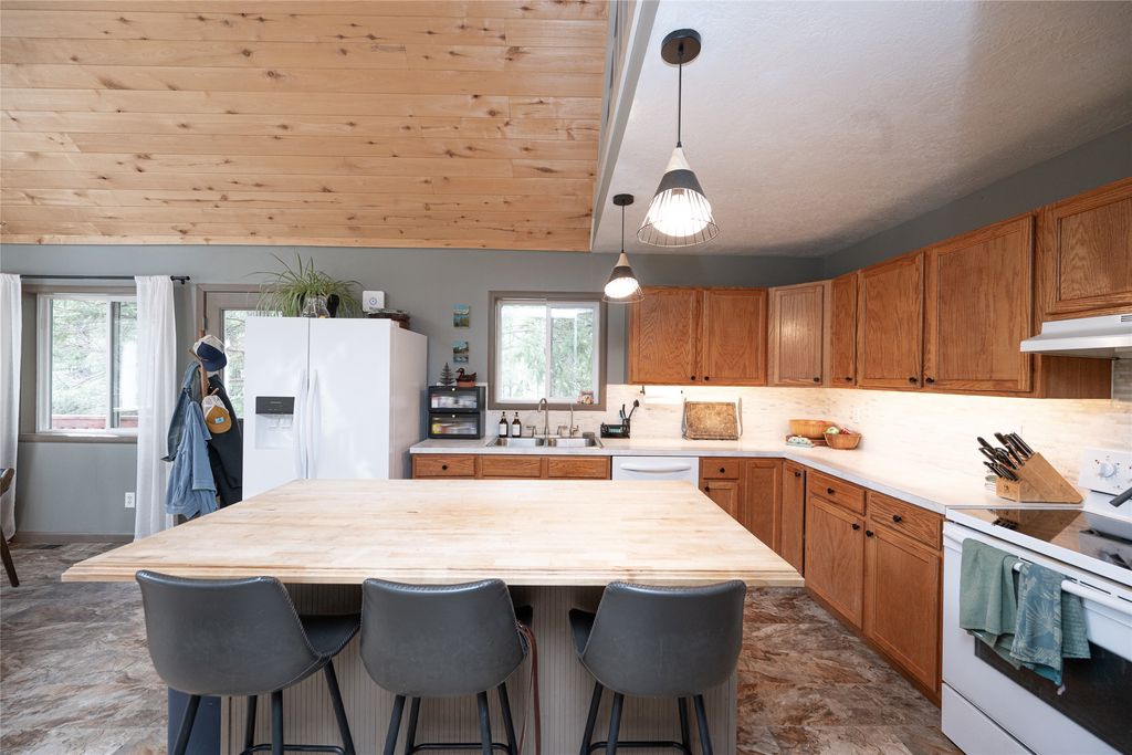 Set on 1.08 acres in the desirable Many Lakes, this well-maintained and thoughtfully updated 2,304 sq. ft. home offers space, comfort, and a prime location between Kalispell and Bigfork. The main level features three bedrooms, two bathrooms, and a welcoming living area that flows into the kitchen and dining space, creating an ideal layout for both everyday living and entertaining. A wraparound deck extends your living space outdoors, offering peaceful meadow views and a relaxing setting. Upstairs, a 344 sq. ft. loft currently used as a bedroom includes a half bath and closet, providing flexible space for guests or additional living. The walkout lower level adds even more versatility with a spacious family room, office, laundry area, and direct access to the attached single-car garage. The property also includes a detached two-car garage, a fire pit, perennial/evergreen garden and plenty of room to enjoy the outdoors. Its location provides convenient access to some of northwest Montana's most sought-after destinations, including Glacier National Park, Whitefish Mountain Resort, Flathead Lake, Swan Lake, Blacktail Mountain Ski Area, Jewel Basin Hiking Area, and the Bob Marshall Wilderness.